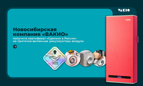 Siberian VAKIO (headquartered in Novosibirsk), specializing in energy-efficient ventilation systems, received a Made in Russia certificate in the Reliability category from Russian Export Center (REC, VEB Group) for its flagship household recuperators.